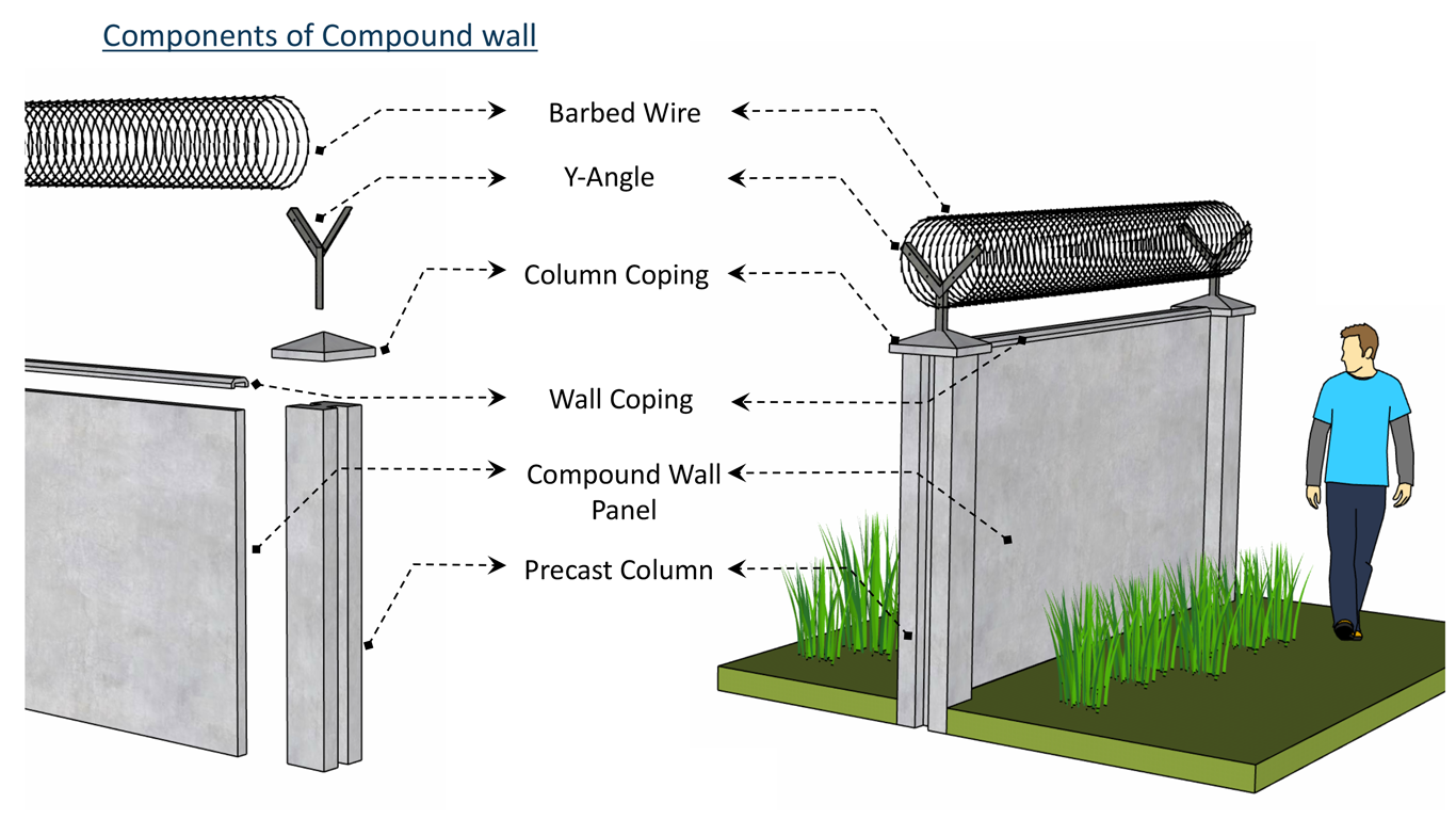 • Cost-effectiveness: Precast RCC compound walls can be cost-effective due to reduced labor, shorter construction time, and optimized material usage.