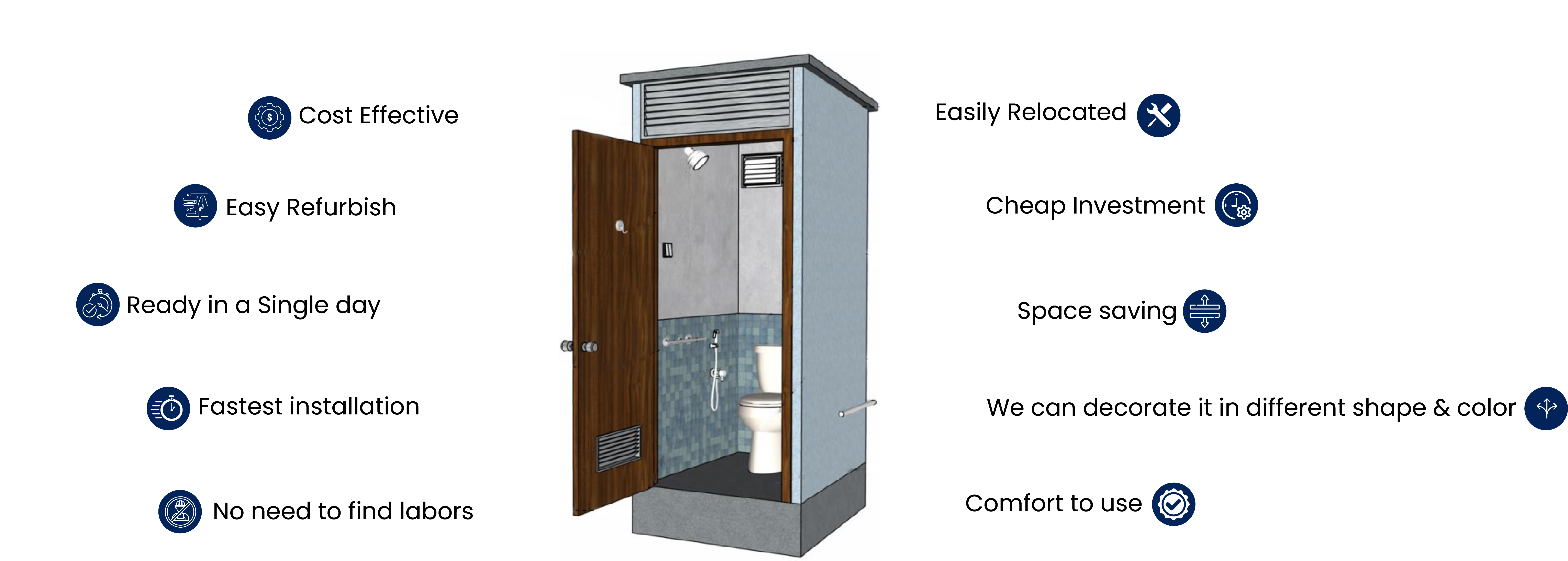 • Customization: These toilets can be customized in terms of size, layout, and design features to meet specific project requirements.