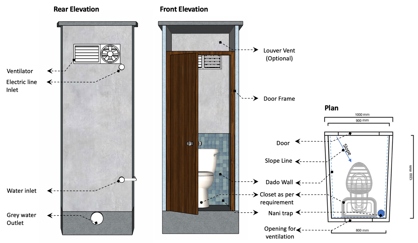 • This RCC Toilet Fully made on Factory made Complete Connection and sealing: Plumbing and electrical works: Finishing: Fixtures and accessories: